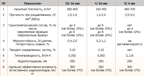 Что касается последнего пункта, то керамзитовый щебень имеет фракцию 5-40 мм.