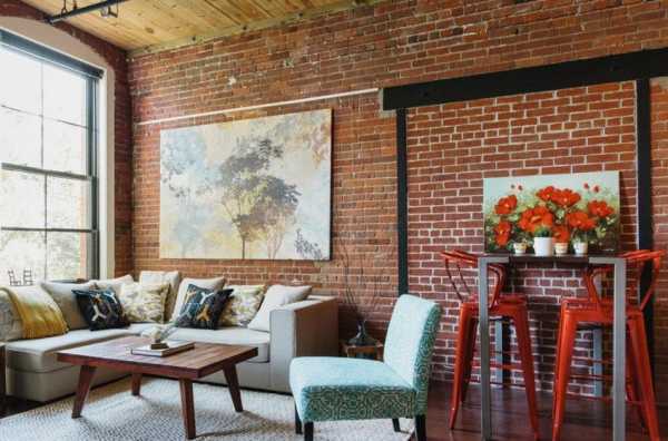 Старайтесь не переусердствовать с брутальной отделкой. Сочетайте ее с правильно расставленной мебелью. Подойдет к интерьеру, оформленному кирпичом кожаная, бамбуковая, деревянная и яркая мебель. Стильные рисунки на стене придадут интерьеру комнат яркую палитру жизни.