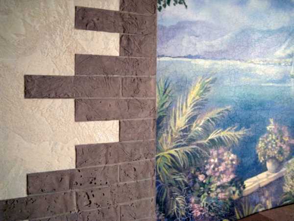 Удачное сочетание на стенах отделочных материалов различных цветов