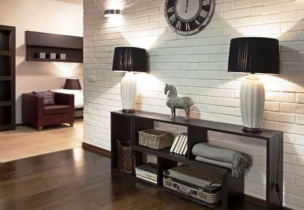 ΠΠ° ΡΠ°ΠΊΠΎΠΉ Π±Π΅Π»ΠΎΠΉ ΠΊΠΈΡΠΏΠΈΡΠ½ΠΎΠΉ ΡΡΠ΅Π½Π΅ ΠΌΠΎΠΆΠ½ΠΎ ΡΠ°ΡΠΏΠΎΠ»ΠΎΠΆΠΈΡΡ ΡΠΎΡΠΎΠ³ΡΠ°ΡΠΈΠΈ ΠΈΠ»ΠΈ ΠΊΠ°ΡΡΠΈΠ½Ρ, Π² ΠΊΠΎΠΌΠ½Π°ΡΠ΅ ΠΏΠΎΡΡΠ°Π²ΠΈΡΡ ΡΠΎΠ²ΡΠ΅ΠΌΠ΅Π½Π½ΡΡ ΠΌΠ΅Π±Π΅Π»Ρ, ΡΠΎΠ·Π΄Π°Π²Π°Ρ Π»Π΅Π³ΠΊΠΈΠΉ ΡΡΠΈΠ»Ρ.