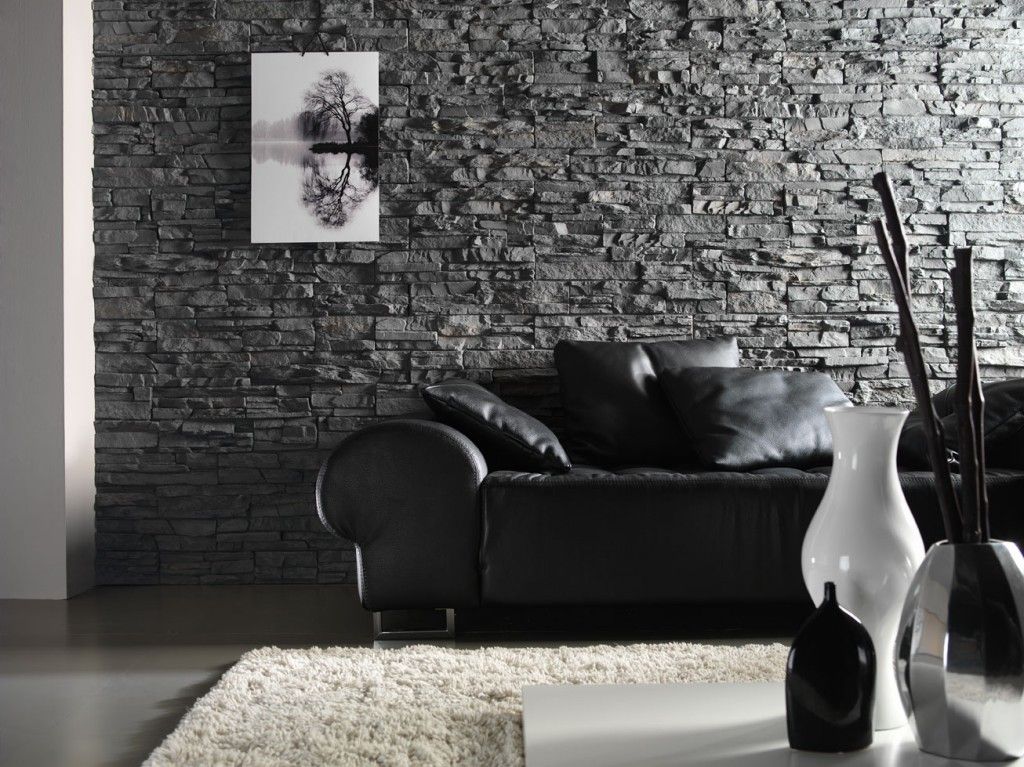 Tapete mit Ziegelmuster — черная кирпичная стена в интерьере фото и изображенияTapete mit Ziegelmuster