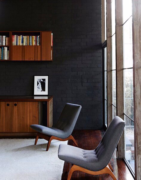 — черная кирпичная стена интерьер фото и фотографии