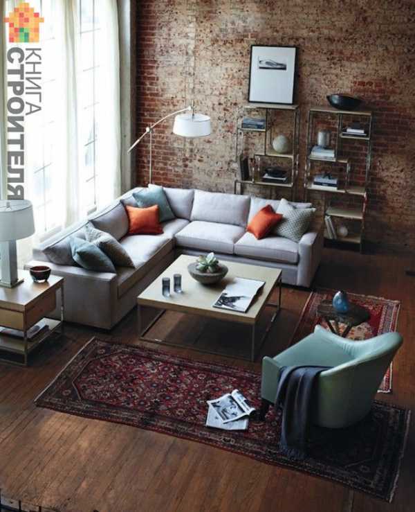Декор гостиной комнаты с кирпичной стеной