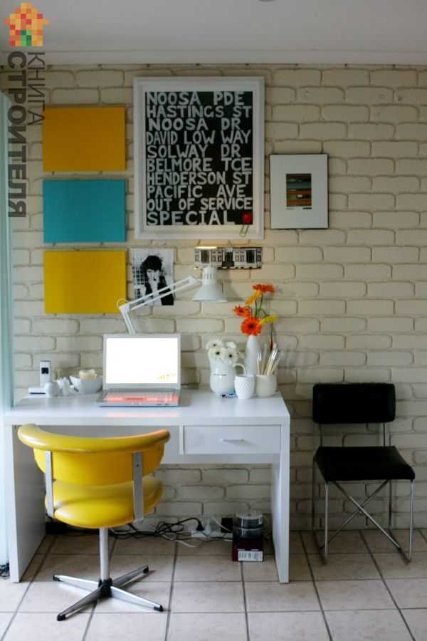 Яркая мебель великолепно смотрится на фоне серой кирпичной стены Книга Строителя
