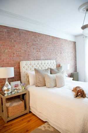 Кирпичная кладка в интерьере спальни