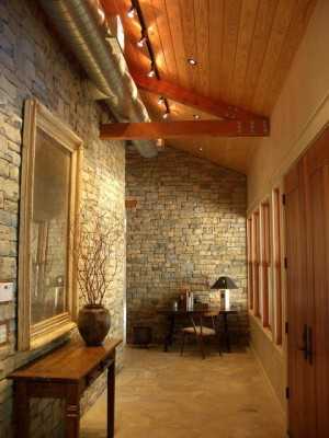 Самым популярным материалом для отделки специфических интерьеров является облицовочный кирпич. Он представлен в большом ассортименте. Такой кирпич может быть матовым, глазурованным или искусственно состаренным. Для его крепления на стену используют клей той же марки, что и для работ с искусственным камнем. Швы обрабатываются соответствующей по тону плиточной затиркой. Облицовочный кирпич заметно тоньше и значительно легче оригинального строительного собрата, «съедает» минимум полезной площади, поэтому просто идеален для облицовки малогабаритных комнат и тонкостенных поверхностей.