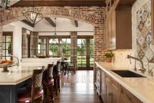 Интерьер кухни с кирпичной стеной