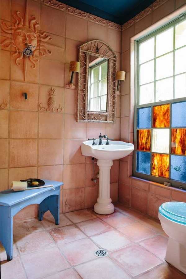 Традиционный терракотовый цвет в интерьере ванной немного скучноват, разве что вы непоправимый консерватор. А вот яркие варианты этой палитры с добавлением оранжевого и розово-алого цветов могут создать интересную дизайнерскую ванную. Но эти цвета достаточно яркие, а блеск кафеля их только усилит. Используйте такой цветовой прием для стен дозировано, чтобы создать комфортную комнату.