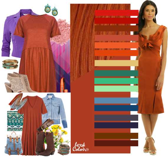 Сочетание рыжего цвета в одежде — 6 ярких палитр построенных на основе одного из оттенков рыжего: 16 оттенков в каждом, гардероб. Фото
