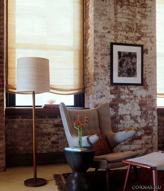 Это очень важно. Многие дизайнеры, если им досталась стена в плохом состоянии, специально укрепляют ее, вынимают плохие элементы, заменяя их новыми, ровняют швы, иногда чистят пескоструем и даже иногда покрывают его специальным лаком, чтобы сделать цвет кирпича интенсивнее, но сохранить его пористую фактуру.