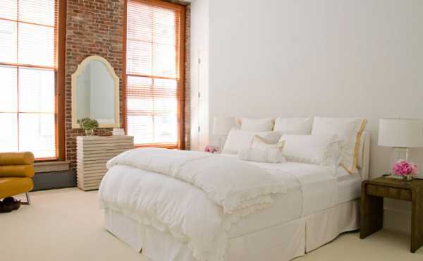 Просторное помещение этих спален полностью соответствует стилю лофта, и не только кирпичная кладка тому доказательство, но и высокие потолки, огромные промышленные окна, наличие труб и балок индустриального предназначения.