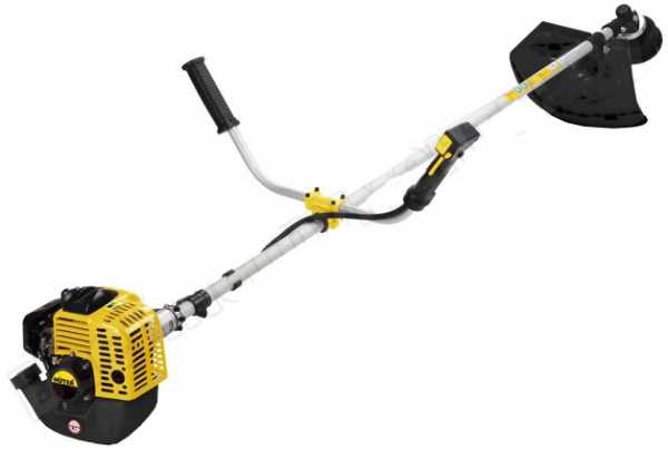 Самый простой 4-тактный мотоцикл на рынке. Вес. 6,5 кг, Объем двигателя 25 см 3, Мощность. 1 л.с., ловля косилки. 43 см, рукоятка ножа 30 см, 2 струны 2,4 мм. двигатель c тремя поршневые кольца, хромированные и отточенные на внутренней стороне цилиндра, с жестким приводным валом диаметром 9 мм, посадочной площадкой «9z», редуктором, широким лезвием дефлектора травы, переключатель находится на правая ручка — все под рукой. Съемный (по запросу, intaglio) прямой бар, регулируемый для вашей рукоятки высоты в виде буквы «D».