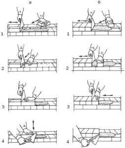 Каменщики в своей работе применяют три вида укладки кирпича: