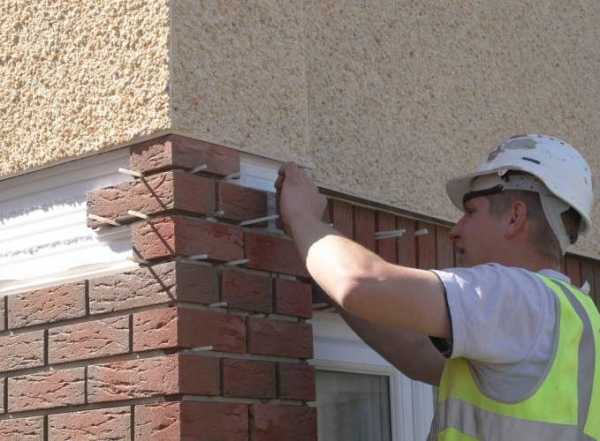 В этом случае наряду с возведением наружных стен осуществляется и их наружная отделка. Для облицовки применяется лицевой кирпич, который укладывают в наружный верстовой ряд одновременно с обычным, применяя для этого многорядную систему перевязки. Отделку можно также производить с помощью специальных керамических плит с закладными элементами.