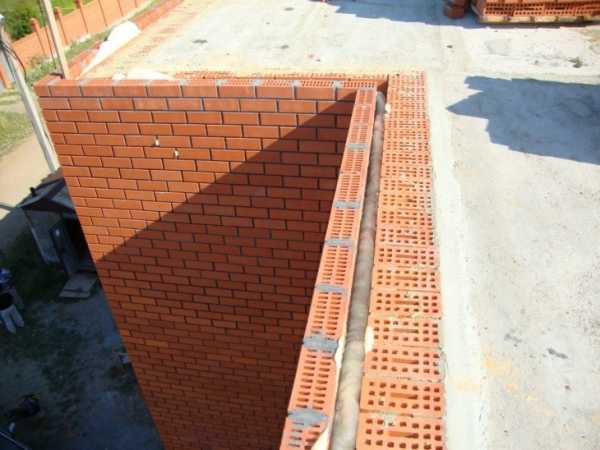 Первый и последний ряды кладки укладывают строго перпендикулярно основным рядам. Это будет играть роль своеобразного скрепляющего пояса. При нанесении раствора следует следить, чтобы все швы были хорошо заполнены. Иначе помещение будет сильно продуваться.