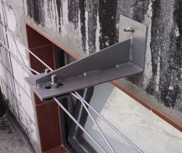 Для анкеровки перемычек заводского изготовления над оконными проемами, которые нельзя укреплять по сторонам (из-за вертикального шва), можно воспользоваться специальными проволочными кронштейнами (как показано на рисунке ниже). На этих кронштейнах можно зафиксировать как перемычки заводского изготовления, так и самодельного производства.