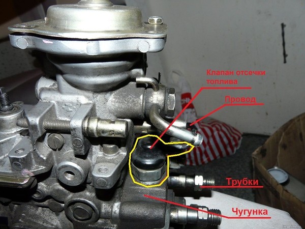 Регулятор давления он же обратный клапан, он же перепускной клапан, установлен на топливной рейке.