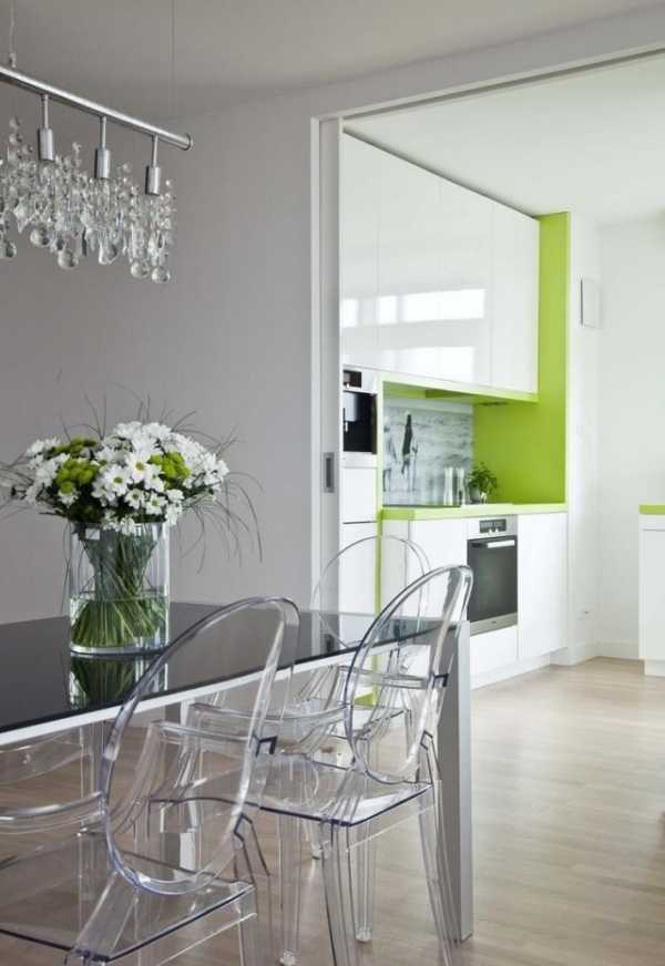 Старайтесь создать максимально легкий интерьер. Кухонные шкафчики вполне можно заменить парой деревянных полок, а посуда на них послужит ненавязчивым декором. Пластиковые прозрачные стульчики за столом не обременят интерьер, а напротив, добавят ему воздуха и невесомости. Если это возможно, оставьте окна без занавесок – северное оформление очень любит дневной свет.