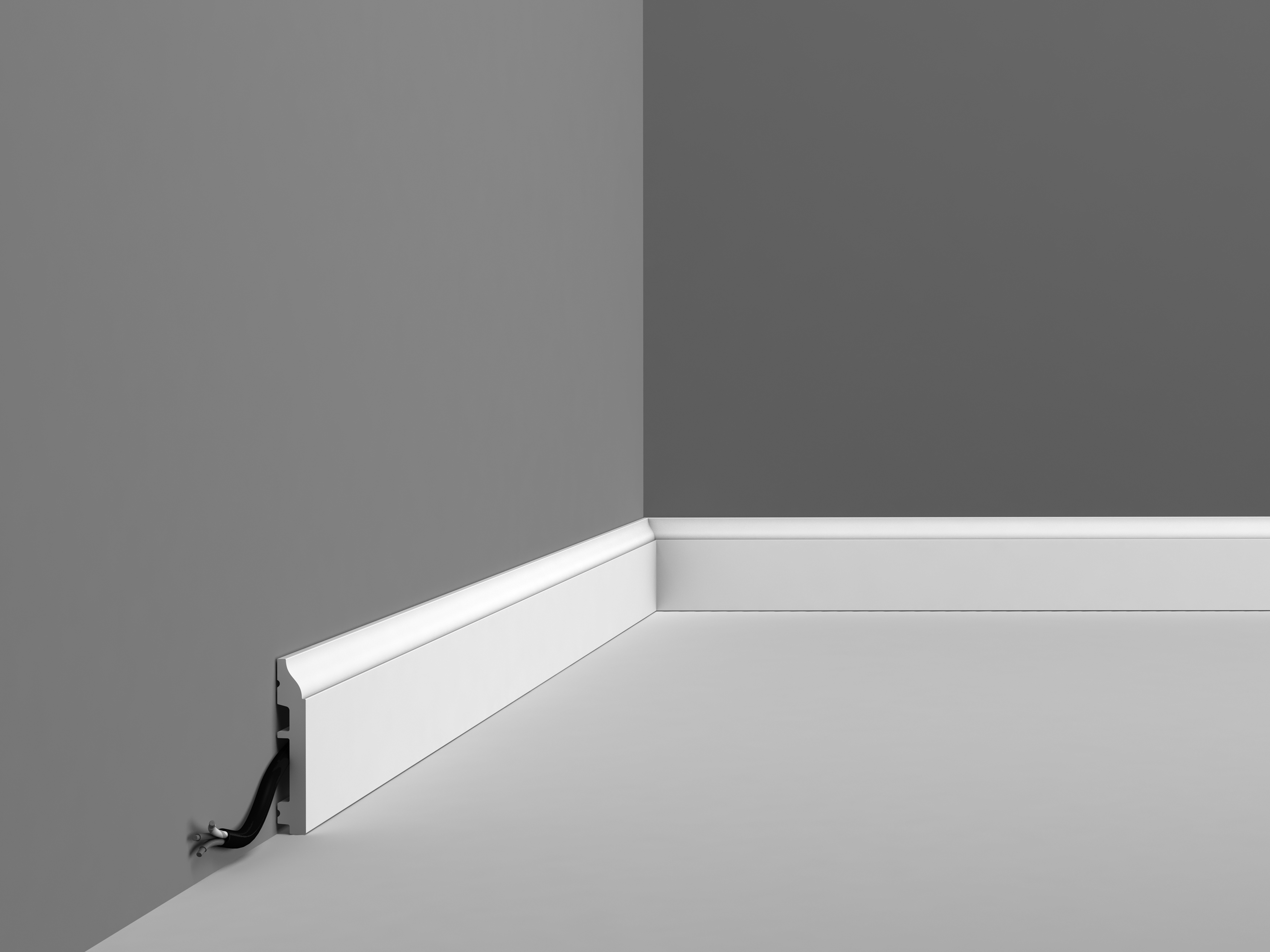 SX165 Небольшой плинтус также доступен в гибком исполнении для изогнутой стены. Идеально подходит в качестве альтернативы ламинату.