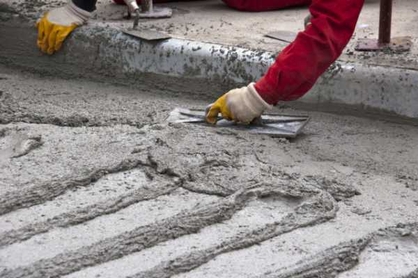В процессе изготовления отмостков, дорожек и стяжек, повышение марок бетона происходит до показателя с прочностью 200 и 350.