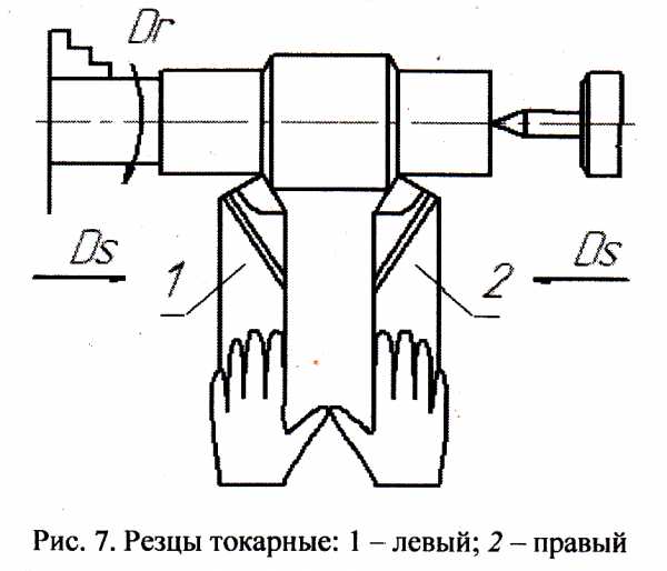 - Левыми. Подача идет вправо. Если положить наверх инструмента левую руку, режущая кромка окажется около большого пальца, который отогнут.