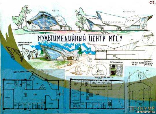 Клаузурный набросок должен содержать лишь то что необходимо для раскрытия идеи: изображение должно быть обобщенным и выразительным. Размещение проекций на листе подчиняется общим компоновочным требованиям, однако основное место может получить перспективный рисунок или одна какая- либо проекция, наиболее ясно раскрывающая концепцию или образную характеристику объекта в окружающей среде. Исполнительская манера должна соответствовать жанру темы.