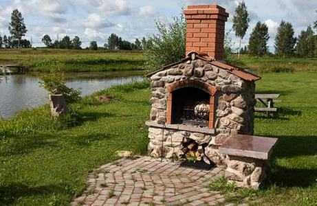 Если же вас прельщает именно классическая беседка, то рядом с ней можно построить простую шашлычницу. Строят отдельно стоящие шашлычницы и без дымоходов. Чем хорошо такое решение, так это возможностью возвести стационарную шашлычницу своими силами. А вот закрытую беседку с шашлычницей или веранду с печью необходимо заказывать профессиональным печникам. И, кстати, стоящая неподалеку от беседки стационарная шашлычница в форме, например, деревенской печи становится еще одним украшением участка.