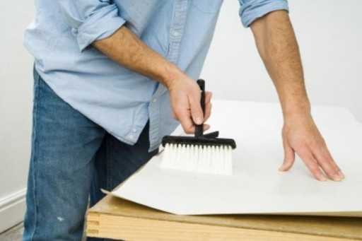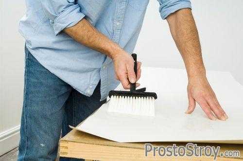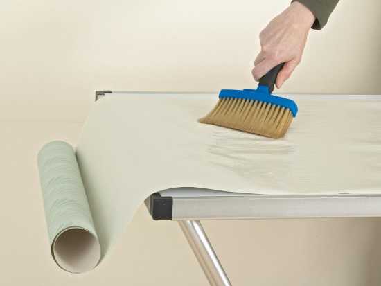 Аккуратное нанесения клея на обойное полотноОбои из винила с бумажной основой