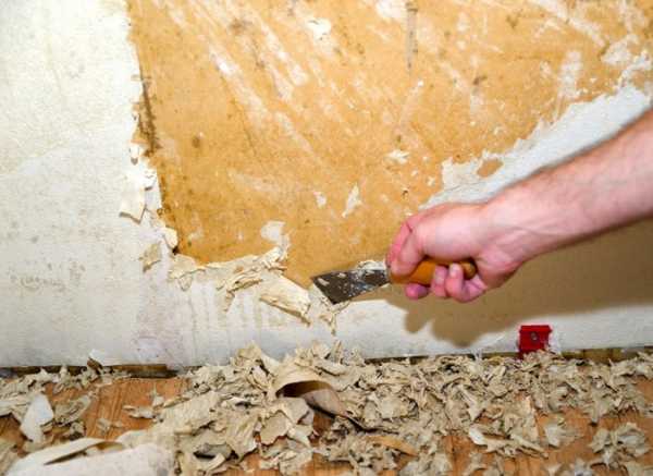 - Удалить старые обои, воспользовавшись шпателем и водой.