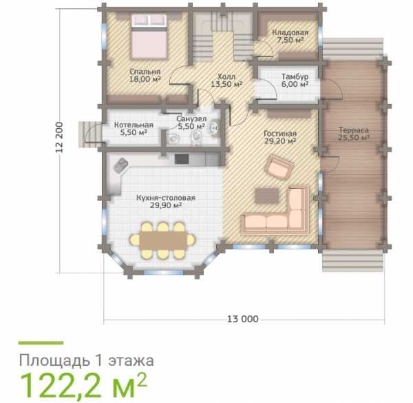 Дома из клееного бруса — проекты с площадью и планировкой