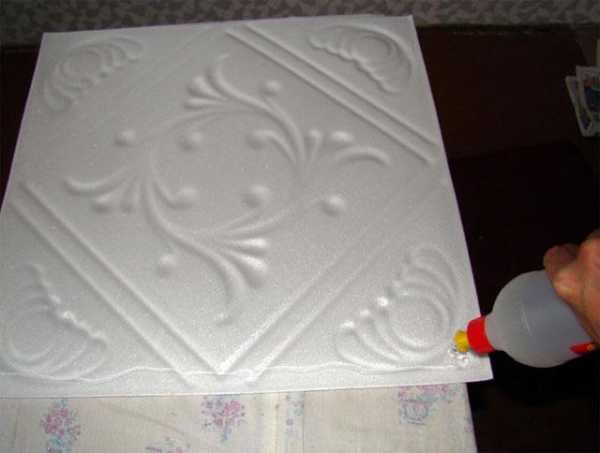 Как приклеить потолочную плитку из пенопласта? Можно приклеивать ее прямо на побелку: