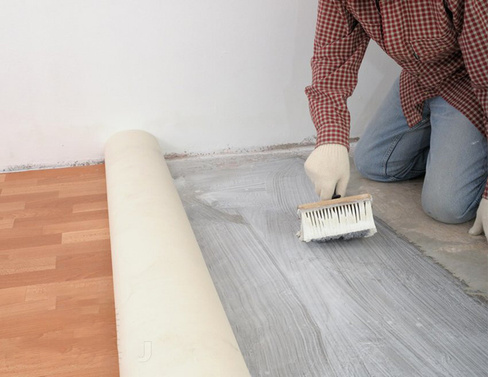 Как приклеить линолеум к полу клеем, чтобы не столкнуться с последующими проблемами? Большинство ошибок при укладке настила связаны с неправильным устройством основания. При поклейке линолеума клей наносится лишь на идеально ровную, очищенную, сухую и обезжиренную основу. Идеальный вариант – свежий наливной пол. Но можно клеить покрытие также и на деревянный пол или паркет. В случае неровности пола лучше предварительно выровнять его, используя листы ОСБ или фанеры. Они устойчивы к воздействию сырости и не крошатся во время укладки.