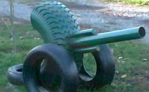 Можно сделать из шин аттракционы для детской площадки. Особенно много увлекательных поделок получается для мальчиков: самоходка, пушка, машины, трактора…им точно понравится.