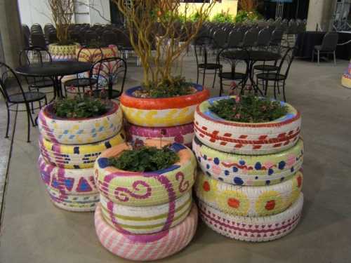 Всегда приятно из бросовой вещи сделать что-то полезное, а если поделка получается еще и красивой — удовольствие двойное. Один из примеров — поделки из шин. Из них делают украшения для дачного или садового участка, разные вазоны и цветочницы, строят детские аттракционы и даже делают дачную мебель — столики и кресла.