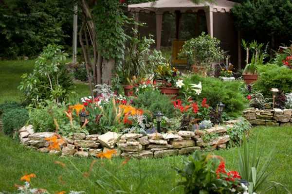 Камень — это самый долговечный материал для цветников. Чаще всего, их просто выкладывают по границе клумбы, создавая бордюр, но гораздо живописнее выглядят многоярусные конструкции.