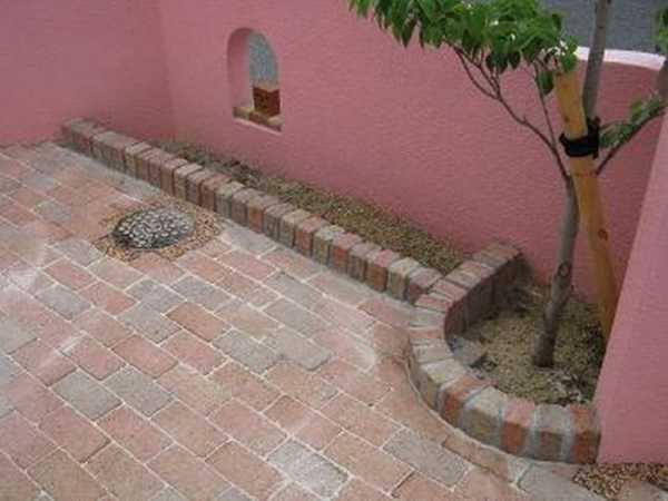 Формирование клумбы с помощью кирпича