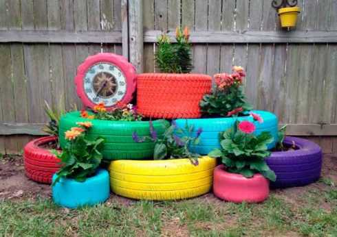Цветники из колесных шин могут быть: