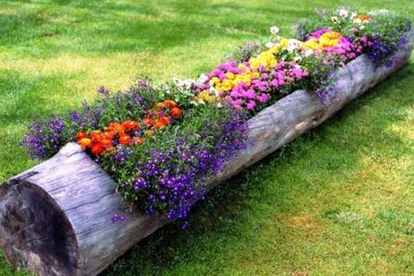 Доски и брёвна — необычный материал для цветника