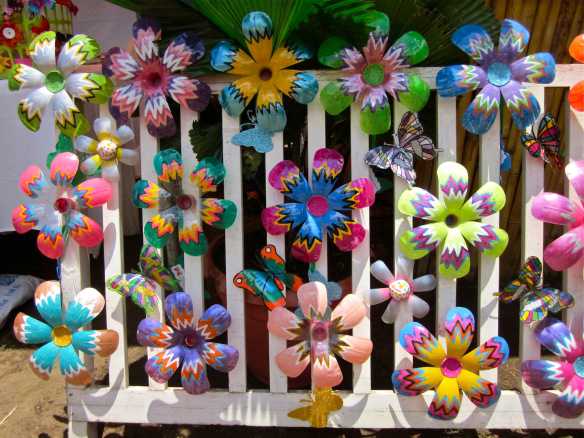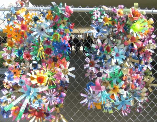 Также непосредственно цветочки можно сделать из пластиковой тары, взгляните на эту красоту – она может сделать любой забор очень красивым, а создается, казалось бы, из ненужных вещей: