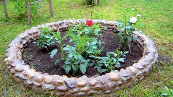 Оформление клумб из камней на дачном участке.