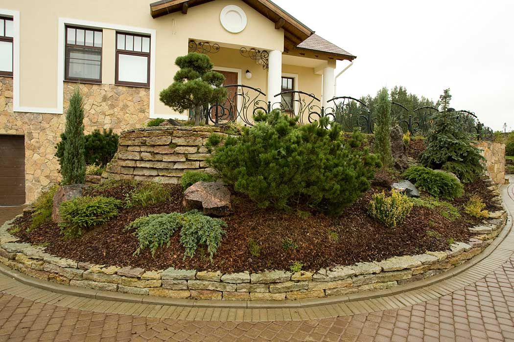 Небольшой бордюр, выложенный из камней, отделяет участок с насаждениями