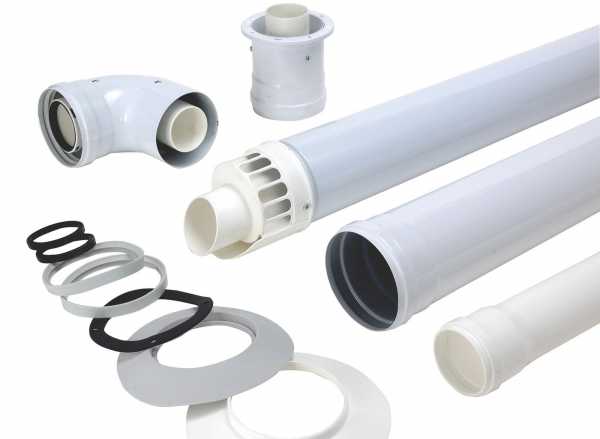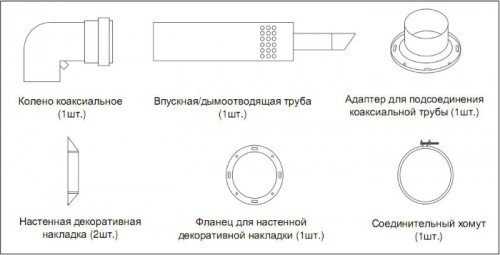 Необходимые составные части для монтажа коаксиального дымоотводного канала для газового отопительного котла