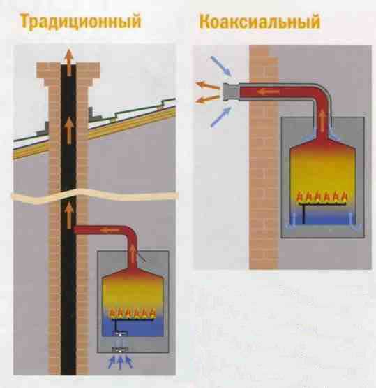 Отличия между выводом обычного и коаксиального дымоходного канала