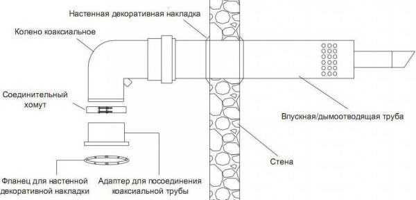 Схема установки коаксиального дымохода