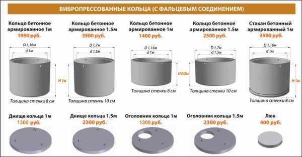 Есть ли смысл покупать канализационные кольца, определяется в каждом конкретном случае, исходя из параметров будущего септика. Но для того, чтобы примерно прикинуть смету, можно посмотреть на таблицу, где указаны цены на разные железобетонные кольца для канализации.