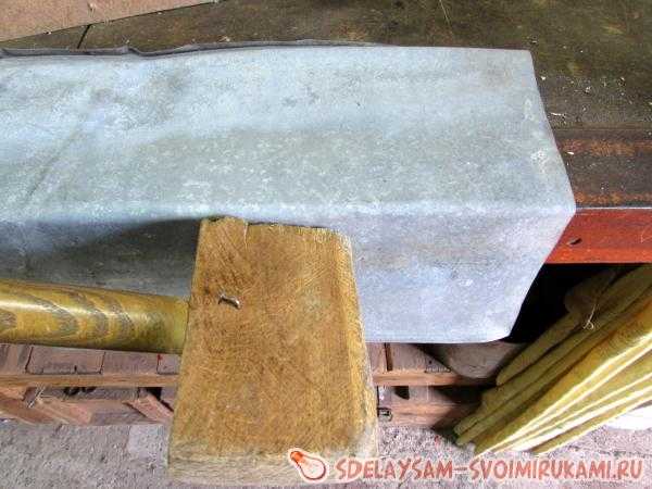 1) Взяв оцинкованную полосу шириной в 20 см, сначала отбивают жесть на уголке.