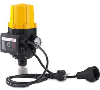 Пресс-контроль подойдёт для погружных насосов, если они используются нечасто. Блок управления автоматически включает оборудование при открывании крана и выключает, когда кран закрывается. В зависимости от настроек, отключается при снижении давления до 1,5-2,5 бар.