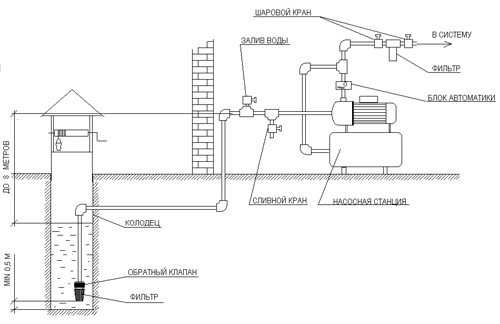 В таких случаях необходимо вырывать колодец или скважину и погружать в него насос. Ну а для автоматизации всех процессов необходимо пользоваться автоматикой.