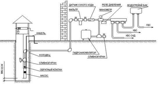 Чтобы нормально работать, в системе водоснабжения должно быть достаточное давление. Давление должно образовываться в тот момент, когда открывается кран. Причем если вами не куплен специальный накопительный бак, то насос должен качать воду из колодца каждый раз, когда вы откроете кран.