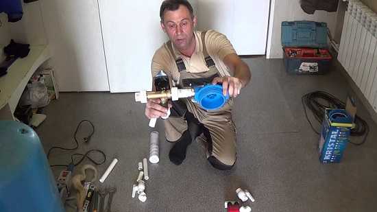 - Теперь соединяются вертикальный трубопровод и тройник. Для обеспечения герметизации соединения используется пакля и сантехпаста.